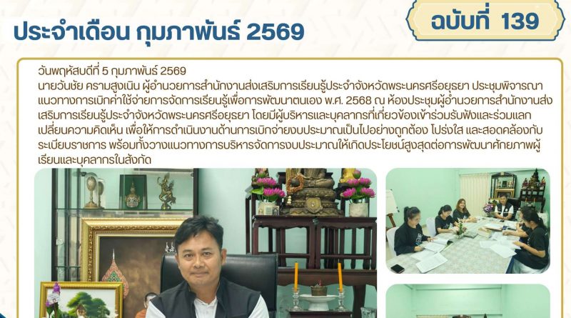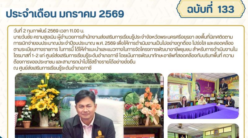 จดหมายข่าว admin 2 กุมภาพันธ์ 20269 กุมภาพันธ์ 2026 ลงพื้นที่นิเทศติดตามการเบิกจ่ายงบประมาณประจำปีงบประมาณ พ.ศ. 2569 ศูนย์ส่งเสริมการเรียนรู้ระดับอำเภอภาชี วันที่ 2 กุมภาพันธ์ Read More