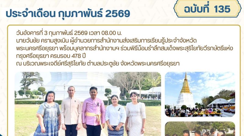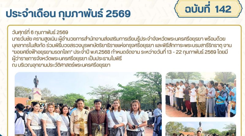 จดหมายข่าว admin 3 กุมภาพันธ์ 20269 กุมภาพันธ์ 2026 ร่วมพิธีน้อมรำลึกสมเด็จพระสุริโยทัยวีรกษัตรีแห่งกรุงศรีอยุธยา ครบรอบ 478 ปี วันอังคารที่ 3 กุมภา Read More