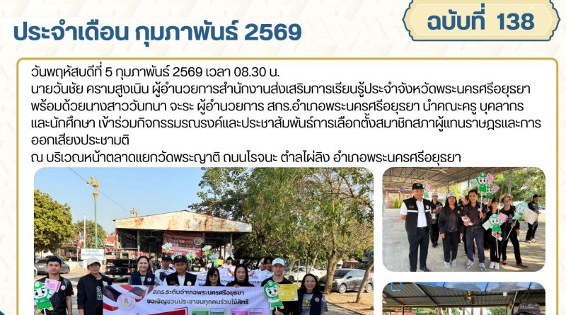 จดหมายข่าว admin 5 กุมภาพันธ์ 20269 กุมภาพันธ์ 2026 กิจกรรมรณรงค์และประชาสัมพันธ์การเลือกตั้งสมาชิกสภาผู้แทนราษฎรและการออกเสียงประชามติ วันพฤหัสบดีที่ 5 กุม Read More