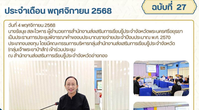จดหมายข่าว admin 4 พฤศจิกายน 202520 พฤศจิกายน 2025 ประชุมพิจารณาคำของบประมาณรายจ่ายประจำปีงบประมาณ พ.ศ. 2570 ประเภทงบลงทุน วันที่ 4 พฤศจิกายน 2 Read More