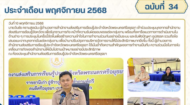 จดหมายข่าว admin 10 พฤศจิกายน 202520 พฤศจิกายน 2025 เข้าร่วมประชุมบุคลากรสำนักงานส่งเสริมการเรียนรู้จังหวัดฯ วันที่ 10 พฤศจิกายน Read More