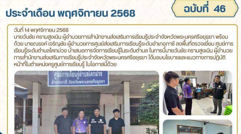 จดหมายข่าว admin 14 พฤศจิกายน 202520 พฤศจิกายน 2025 ลงพื้นที่ตรวจเยี่ยม ศูนย์การเรียนรู้ระดับตำบลโคกม่วง วันที่ 14 พฤศจิกายน Read More