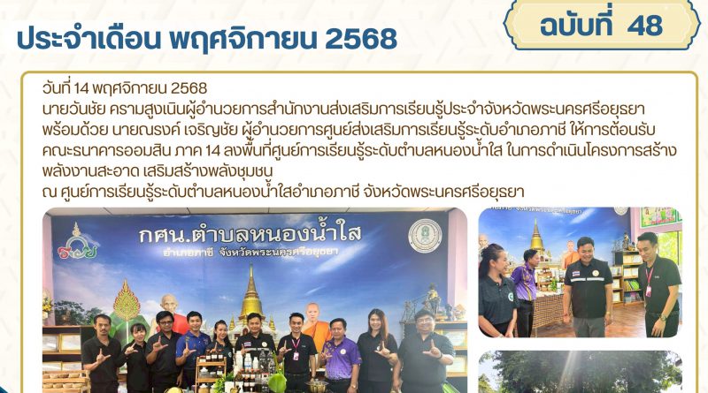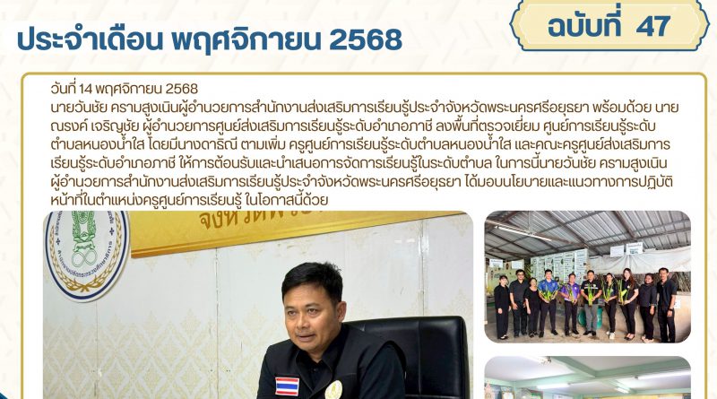 จดหมายข่าว admin 14 พฤศจิกายน 202520 พฤศจิกายน 2025 ลงพื้นที่ตรวจเยี่ยม ศูนย์การเรียนรู้ระดับตำบลหนองน้ำใส วันที่ 14 พฤศจิกายน Read More