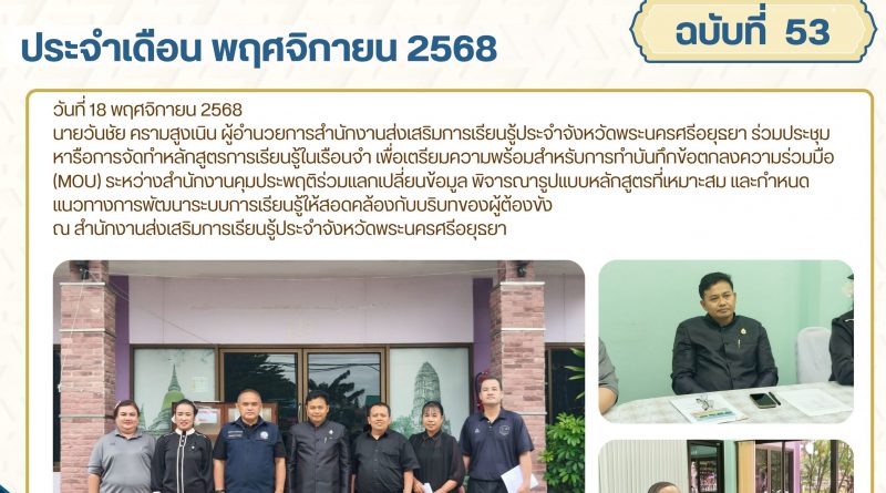 จดหมายข่าว admin 18 พฤศจิกายน 202520 พฤศจิกายน 2025 ร่วมประชุมหารือการจัดทำหลักสูตรการเรียนรู้ในเรือนจำ วันที่ 18 พฤศจิกายน Read More