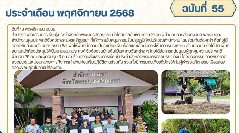 จดหมายข่าว admin 18 พฤศจิกายน 202520 พฤศจิกายน 2025 ขอขอบคุณสำนักงานคุมประพฤติจังหวัดพระนครศรีอยุธยา ที่ให้การสนับสนุนการปรับปรุงภูมิทัศน์บริเวณสำนักงาน วันที่ 18 พฤศจิกายน Read More