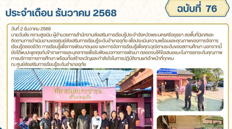 จดหมายข่าว admin 2 ธันวาคม 202522 ธันวาคม 2025 ลงพื้นที่นิเทศและติดตามการดำเนินงานของศูนย์ส่งเสริมการเรียนรู้ระดับอำเภออุทัย วันที่ 2 ธันวาคม 256 Read More
