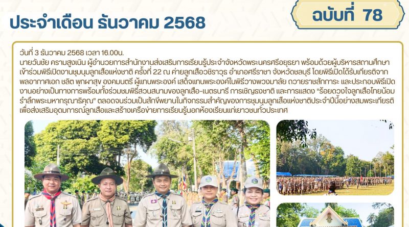 จดหมายข่าว admin 3 ธันวาคม 202522 ธันวาคม 2025 เข้าร่วมพิธีเปิดงานชุมนุมลูกเสือแห่งชาติ ครั้งที่ 22 ณ ค่ายลูกเสือวชิราวุธ อำเภอศรีราชา จังหวัดชลบุรี วันที่ 3 ธันวาคม 256 Read More