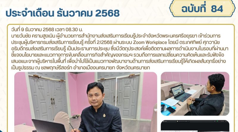 จดหมายข่าว admin 9 ธันวาคม 202522 ธันวาคม 2025 เข้าร่วมการประชุมคณะกรรมการผลักดันการดำเนินงานตามแผนแม่บทภายใต้ยุทธศาสตร์ชาติประเด็นการต่อต้านการทุจริตและประพฤติมิชอบจังหวัดพระนครศรีอยุธยา ครั้งที่ 1 ปีงบประมาณ พ.ศ. 2569 วันที่ 9 ธันวาคม 256 Read More
