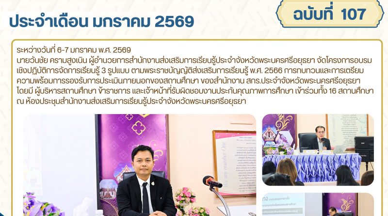 จดหมายข่าว admin 7 มกราคม 202612 มกราคม 2026 จัดโครงการอบรมเชิงปฏิบัติการจัดการเรียนรู้ 3 รูปแบบ ตามพระราชบัญญัติส่งเสริมการเรียนรู้ พ.ศ. 2566 ระหว่างวันที่ 6-7 มก Read More
