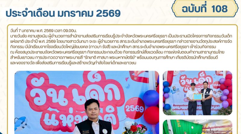 จดหมายข่าว admin 7 มกราคม 202612 มกราคม 2026 โครงการกิจกรรมวันเด็กแห่งชาติ ประจำปี พ.ศ. 2569 วันที่ 7 มกราคม พ.ศ. Read More