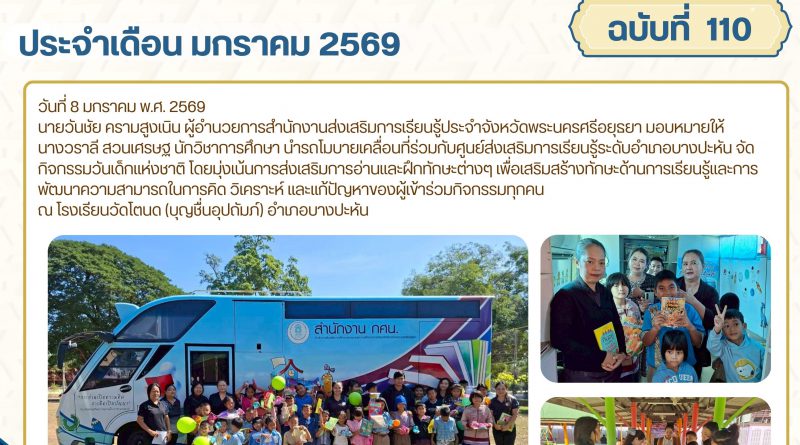 จดหมายข่าว admin 8 มกราคม 202612 มกราคม 2026 นำรถโมบายเคลื่อนที่ร่วมกับศูนย์ส่งเสริมการเรียนรู้ระดับอำเภอบางปะหัน จัดกิจกรรมวันเด็กแห่งชาติ วันที่ 8 มกราคม พ.ศ. Read More