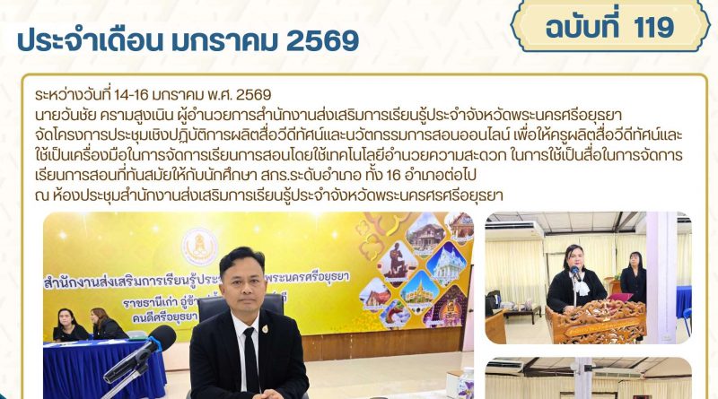 จดหมายข่าว admin 16 มกราคม 20269 กุมภาพันธ์ 2026 จัดโครงการประชุมเชิงปฏิบัติการผลิตสื่อวีดีทัศน์และนวัตกรรมการสอนออนไลน์ ระหว่างวันที่ 14-16 Read More