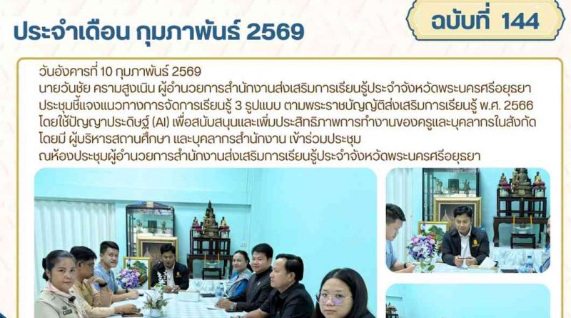 จดหมายข่าว admin 10 กุมภาพันธ์ 20262 เมษายน 2026 ประชุมชี้แจงแนวทางการจัดการเรียนรู้ 3 รูปแบบ ตามพระราชบัญญัติส่งเสริมการเรียนรู้ พ.ศ. 2566 โดยใช้ปัญญาประดิษฐ์ (AI) วันอังคารที่ 10 กุมภ Read More