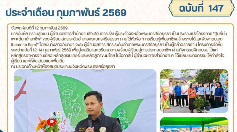 จดหมายข่าว admin 12 กุมภาพันธ์ 20262 เมษายน 2026 ประธานเปิดโครงการ “ศูนย์บ่มเพาะต้นกล้าอาชีพ” ของผู้เรียน สกร.ระดับอำเภอพระนครศรีอยุธยา วันพฤหัสบดีที่ 12 กุ Read More