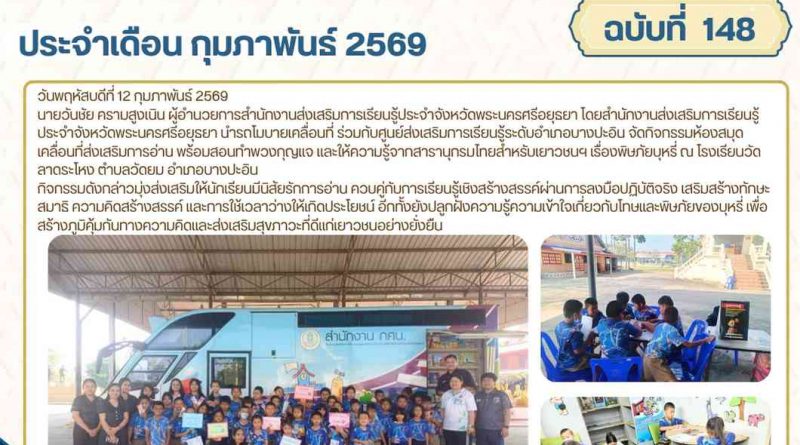 จดหมายข่าว admin 12 กุมภาพันธ์ 20262 เมษายน 2026 นำรถโมบายเคลื่อนที่ ร่วมกับศูนย์ส่งเสริมการเรียนรู้ระดับอำเภอบางปะอิน วันพฤหัสบดีที่ 12 กุ Read More