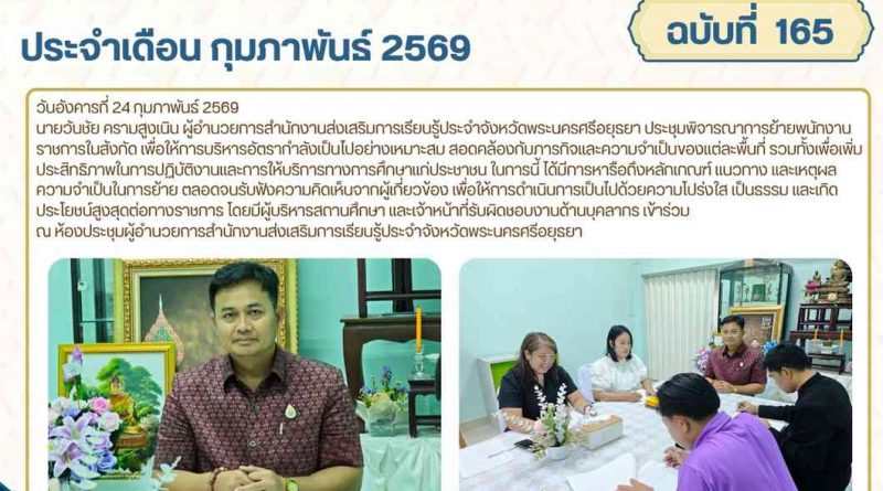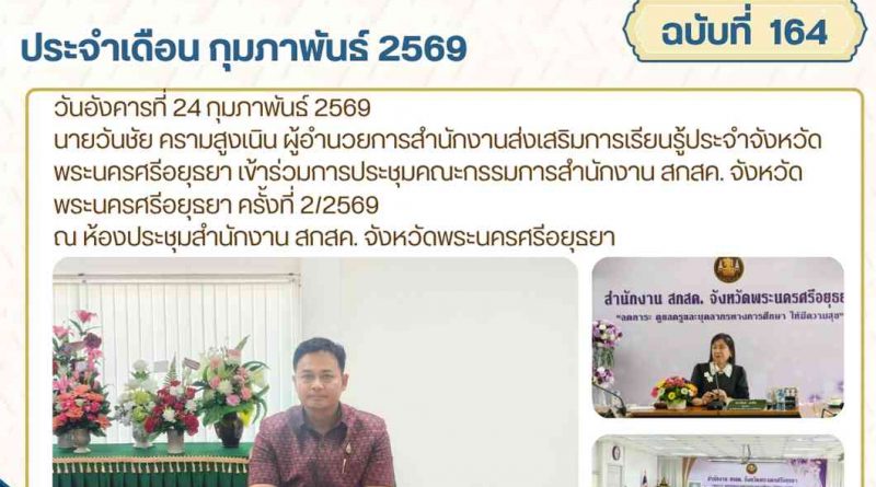 จดหมายข่าว admin 24 กุมภาพันธ์ 20262 เมษายน 2026 เข้าร่วมการประชุมคณะกรรมการสำนักงาน สกสค. จังหวัดพระนครศรีอยุธยา ครั้งที่ 2/2569 วันอังคารที่ 24 กุมภ Read More