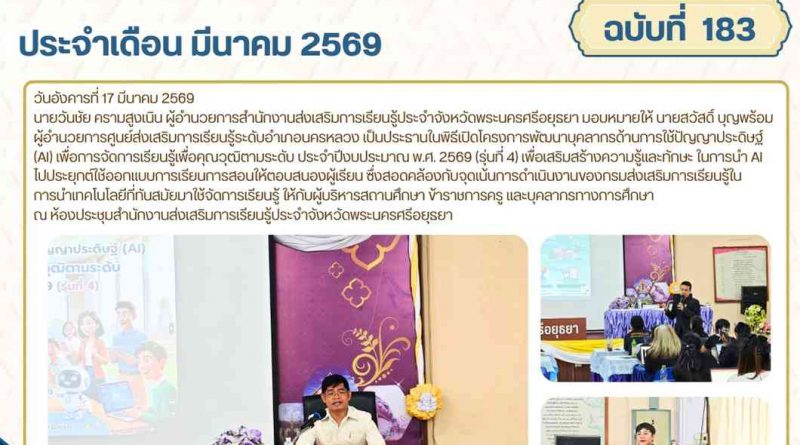 จดหมายข่าว admin 17 มีนาคม 20262 เมษายน 2026 โครงการพัฒนาบุคลากรด้านการใช้ปัญญาประดิษฐ์ (AI) เพื่อการจัดการเรียนรู้เพื่อคุณวุฒิตามระดับ ประจำปีงบประมาณ พ.ศ. 2569 (รุ่นที่ 4) วันอังคารที่ 17 มีนา Read More