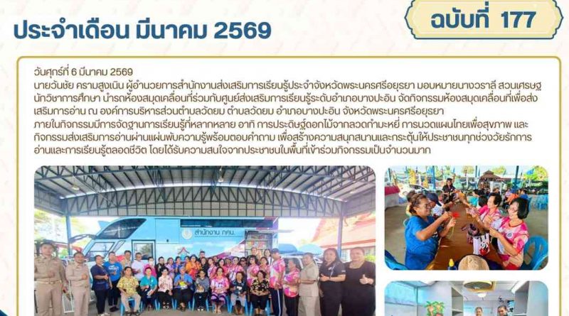 จดหมายข่าว admin 6 มีนาคม 20262 เมษายน 2026 นำรถห้องสมุดเคลื่อนที่ร่วมกับศูนย์ส่งเสริมการเรียนรู้ระดับอำเภอบางปะอิน วันศุกร์ที่ 6 มีนาคม Read More