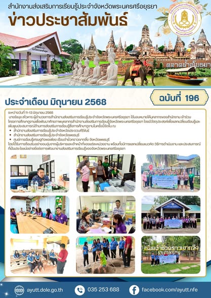 โดยได้รับการต้อนรับอย่างอบอุ่นจากผู้บริหารและเจ้าหน้าที่ของแต่ละหน่วยงาน พร้อมทั้งมีการแลกเปลี่ยนแนวคิด วิธีการดำเนินงาน และประสบการณ์ที่เป็นประโยชน์อย่างยิ่งต่อการพัฒนางานส่งเสริมการเรียนรู้ของจังหวัดพระนครศรีอยุธยา