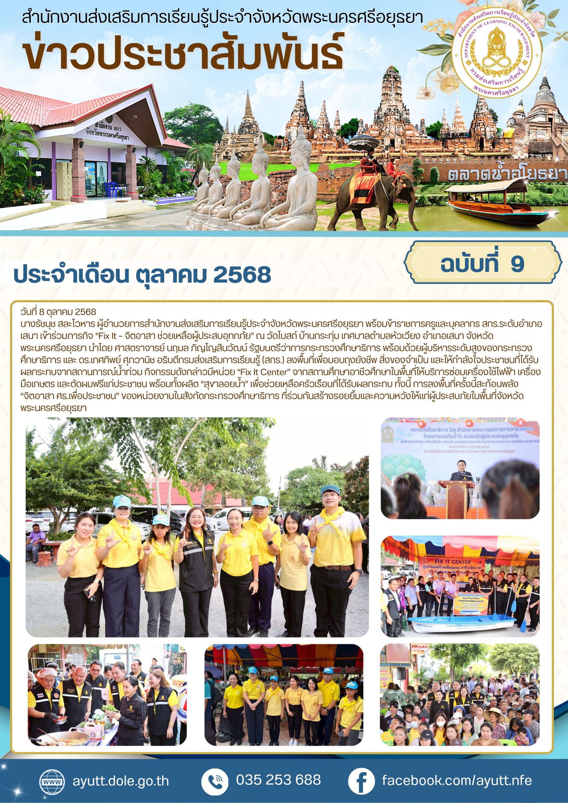 ทั้งนี้ การลงพื้นที่ครั้งนี้สะท้อนพลัง “จิตอาสา ศธ.เพื่อประชาชน” ของหน่วยงานในสังกัดกระทรวงศึกษาธิการ ที่ร่วมกันสร้างรอยยิ้มและความหวังให้แก่ผู้ประสบภัยในพื้นที่จังหวัดพระนครศรีอยุธยา