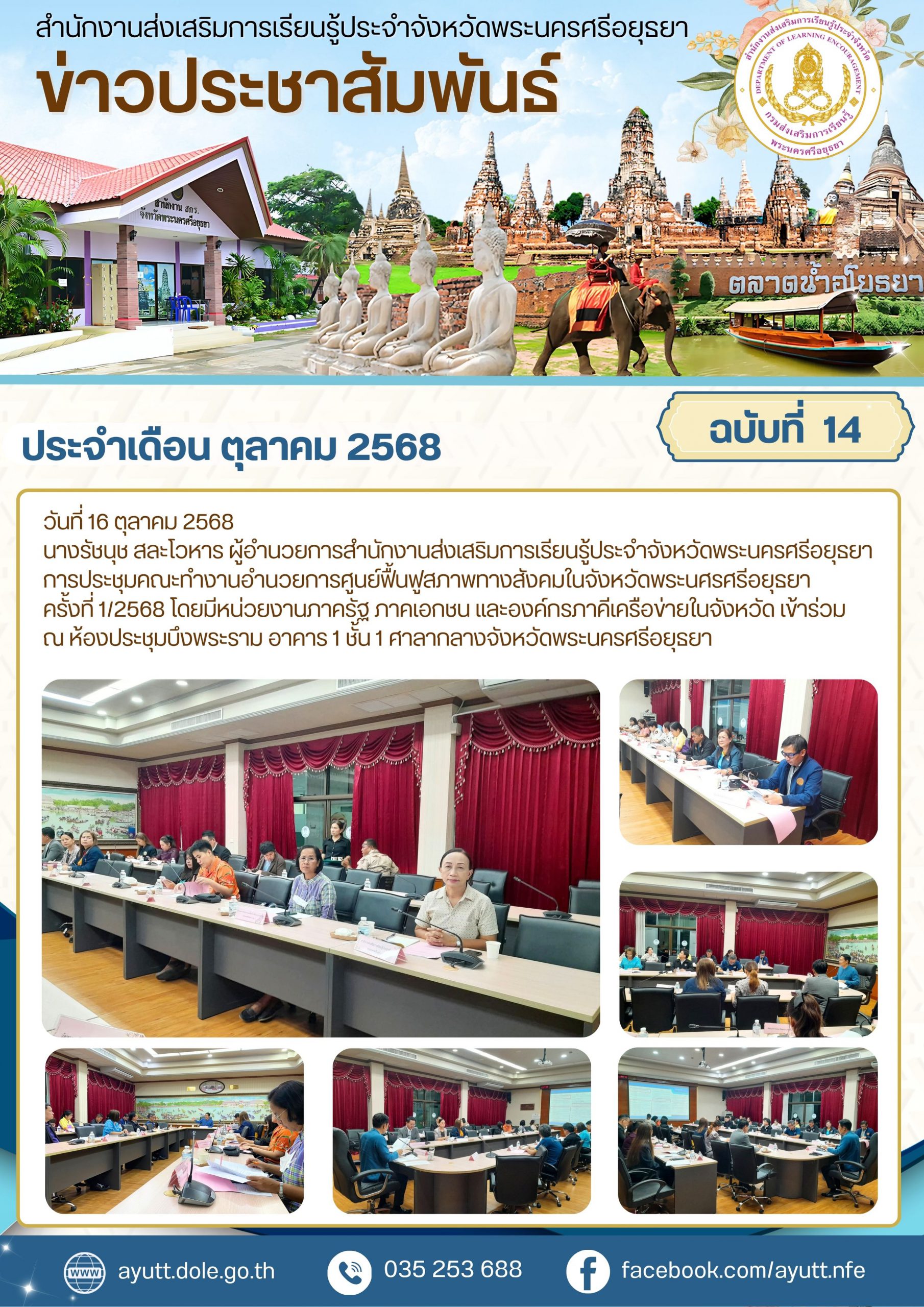 การประชุมคณะทำงานอำนวยการศูนย์ฟื้นฟูสภาพทางสังคมในจังหวัดพระนครศรีอยุธยา ครั้งที่ 1/2568