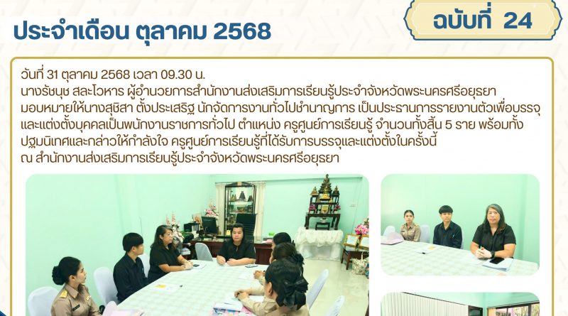 ณ สำนักงานส่งเสริมการเรียนรู้ประจำจังหวัดพระนครศรีอยุธยา