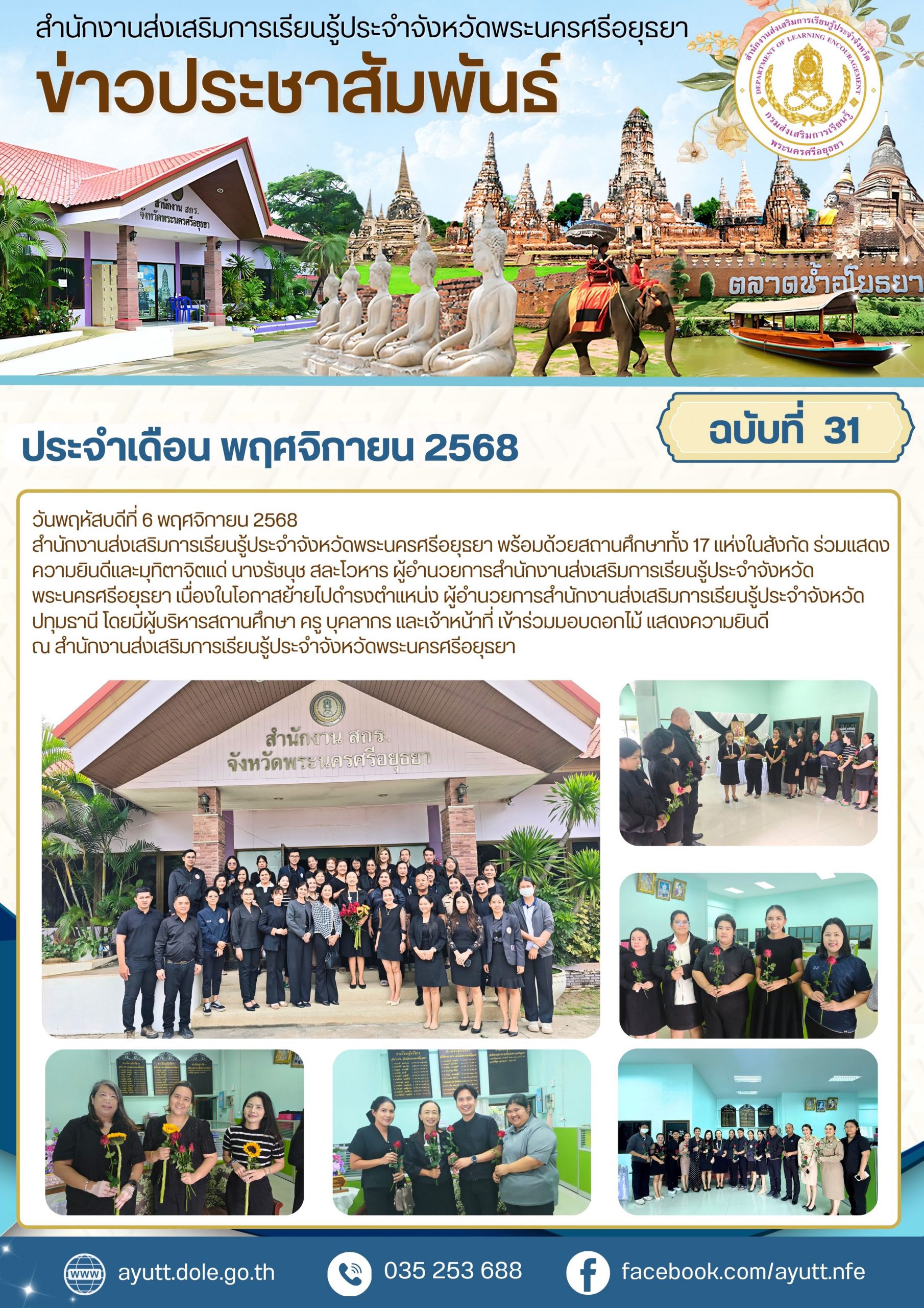 ร่วมแสดงความยินดีและมุทิตาจิตแด่ นางรัชนุช สละโวหาร ผู้อำนวยการสำนักงานส่งเสริมการเรียนรู้ประจำจังหวัดพระนครศรีอยุธยา