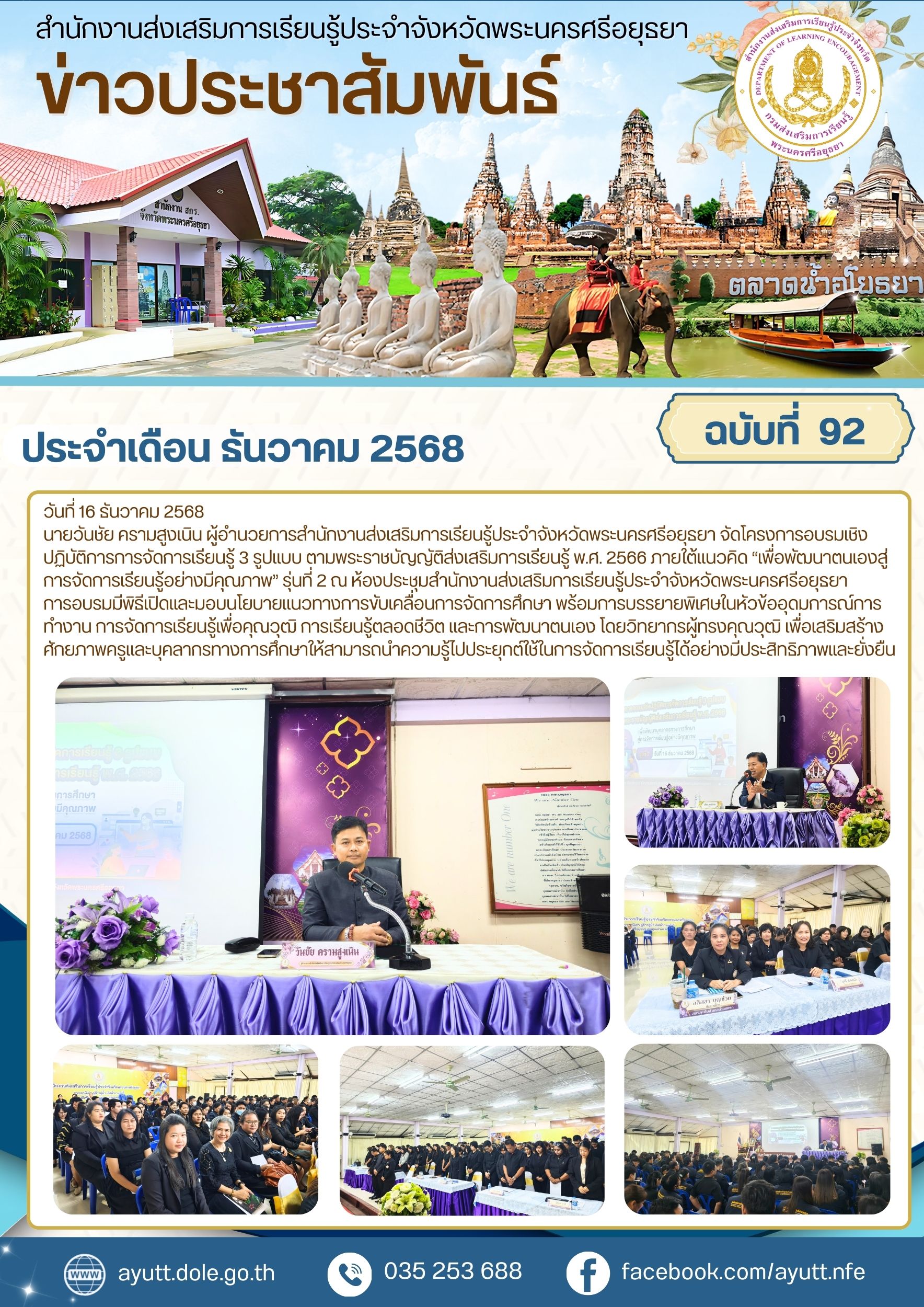 นายวันชัย ครามสูงเนิน ผู้อำนวยการสำนักงานส่งเสริมการเรียนรู้ประจำจังหวัดพระนครศรีอยุธยา จัดโครงการอบรมเชิงปฏิบัติการการจัดการเรียนรู้ 3 รูปแบบ ตามพระราชบัญญัติส่งเสริมการเรียนรู้ พ.ศ. 2566 ภายใต้แนวคิด “เพื่อพัฒนาตนเองสู่การจัดการเรียนรู้อย่างมีคุณภาพ” รุ่นที่ 2 ณ ห้องประชุมสำนักงานส่งเสริมการเรียนรู้ประจำจังหวัดพระนครศรีอยุธยา