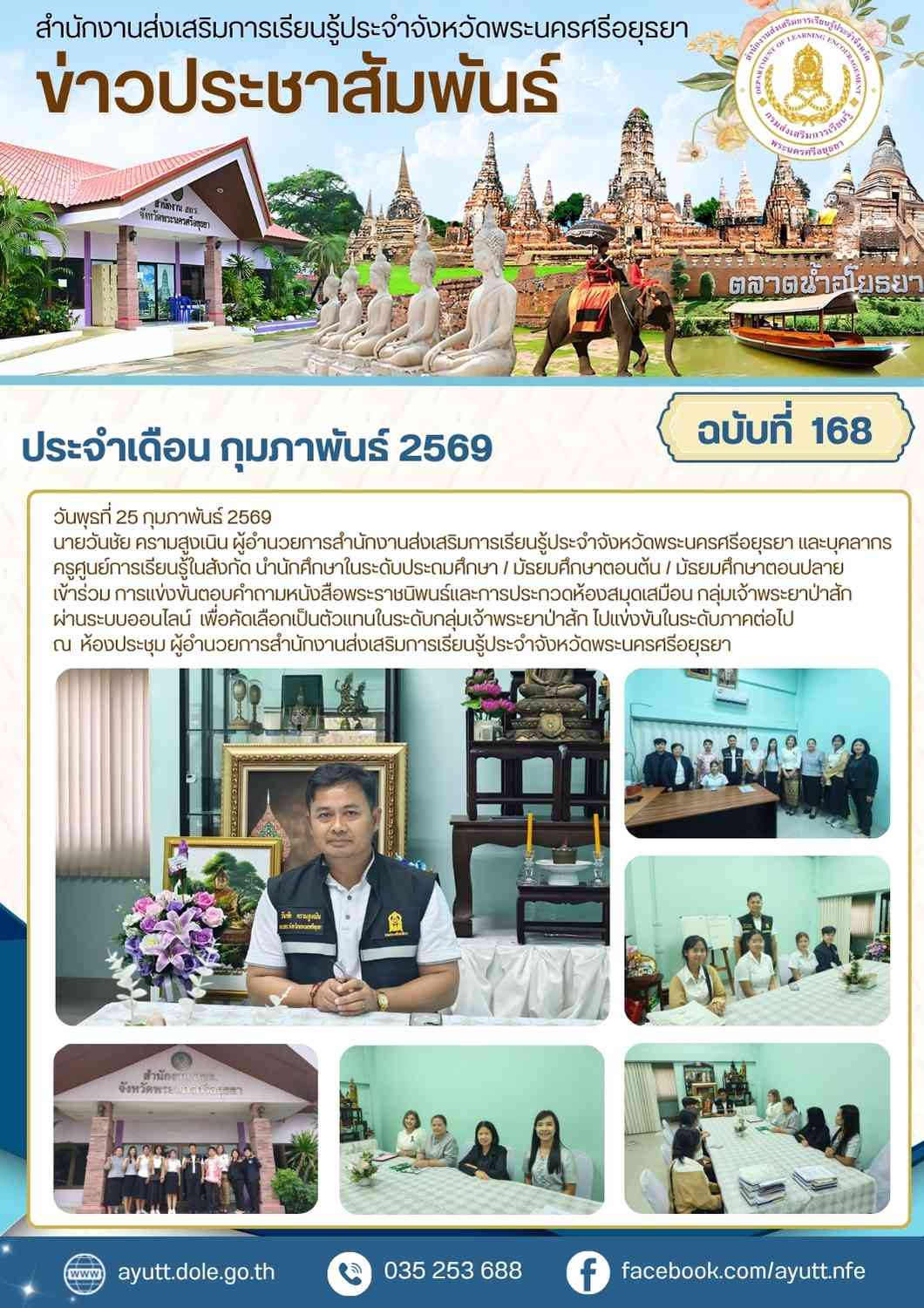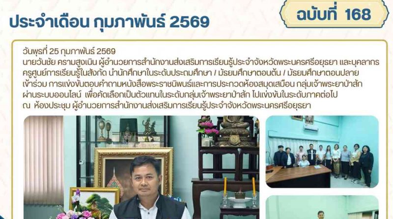 นายวันชัย ครามสูงเนิน ผู้อำนวยการสำนักงานส่งเสริมการเรียนรู้ประจำจังหวัดพระนครศรีอยุธยา และบุคลากรครูศูนย์การเรียนรู้ในสังกัด นำนักศึกษาในระดับประถมศึกษา / มัธยมศึกษาตอนต้น / มัธยมศึกษาตอนปลาย เข้าร่วมการแข่งขันตอบคำถามหนังสือพระราชนิพนธ์และการประกวดห้องสมุดเสมือน กลุ่มเจ้าพระยาป่าสักผ่านระบบออนไลน์ เพื่อคัดเลือกเป็นตัวแทนในระดับกลุ่มเจ้าพระยาป่าสัก ไปแข่งขันในระดับภาคต่อไป