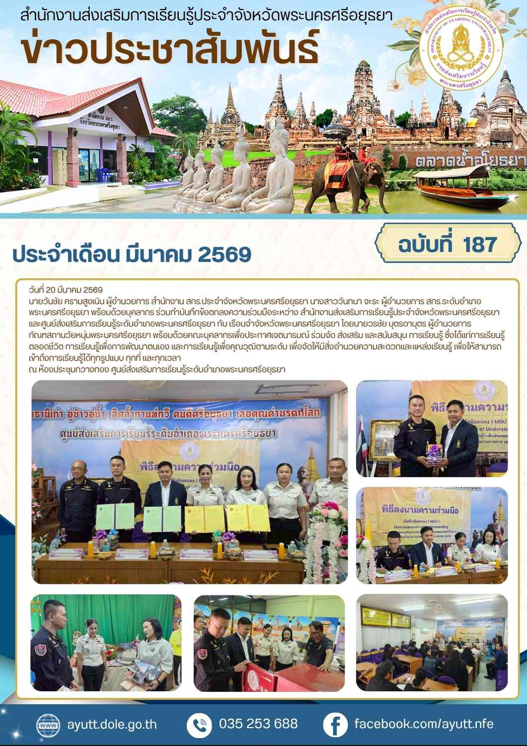 นายวันชัย ครามสูงเนิน ผู้อำนวยการ สำนักงาน สกร.ประจำจังหวัดพระนครศรีอยุธยา นางสาววันทนา จะระ ผู้อำนวยการ สกร.ระดับอำเภอพระนครศรีอยุธยา พร้อมด้วยบุคลากร ร่วมทำบันทึกข้อตกลงความร่วมมือระหว่าง สำนักงานส่งเสริมการเรียนรู้ประจำจังหวัดพระนครศรีอยุธยา และศูนย์ส่งเสริมการเรียนรู้ระดับอำเภอพระนครศรีอยุธยา กับ เรือนจำจังหวัดพระนครศรีอยุธยา โดยนายวรชัย บุตรดาบุตร ผู้อำนวยการทัณฑสถานวัยหนุ่มพระนครศรีอยุธยา พร้อมด้วยคณะบุคลากรเพื่อประกาศเจตนารมณ์ ร่วมจัด ส่งเสริม และสนับสนุน การเรียนรู้ ซึ่งได้แก่การเรียนรู้ตลอดชีวิต การเรียนรู้เพื่อการพัฒนาตนเอง และการเรียนรู้เพื่อคุณวุฒิตามระดับ เพื่อจัดให้มีสิ่งอำนวยความสะดวกและแหล่งเรียนรู้ เพื่อให้สามารถเข้าถึงการเรียนรู้ได้ทุกรูปแบบ ทุกที่ และทุกเวลา