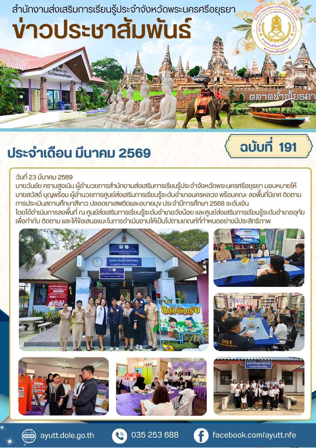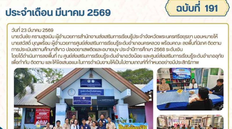 โดยได้ดำเนินการลงพื้นที่ ณ ศูนย์ส่งเสริมการเรียนรู้ระดับอำเภอวังน้อย และศูนย์ส่งเสริมการเรียนรู้ระดับอำเภออุทัย เพื่อกำกับ ติดตาม และให้ข้อเสนอแนะในการดำเนินงานให้เป็นไปตามเกณฑ์ที่กำหนดอย่างมีประสิทธิภาพ