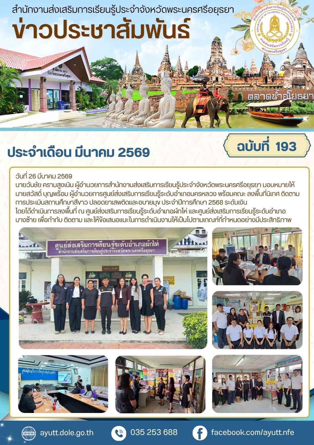 โดยได้ดำเนินการลงพื้นที่ ณ ศูนย์ส่งเสริมการเรียนรู้ระดับอำเภอผักไห่ และศูนย์ส่งเสริมการเรียนรู้ระดับอำเภอบางซ้าย เพื่อกำกับ ติดตาม และให้ข้อเสนอแนะในการดำเนินงานให้เป็นไปตามเกณฑ์ที่กำหนดอย่างมีประสิทธิภาพ
