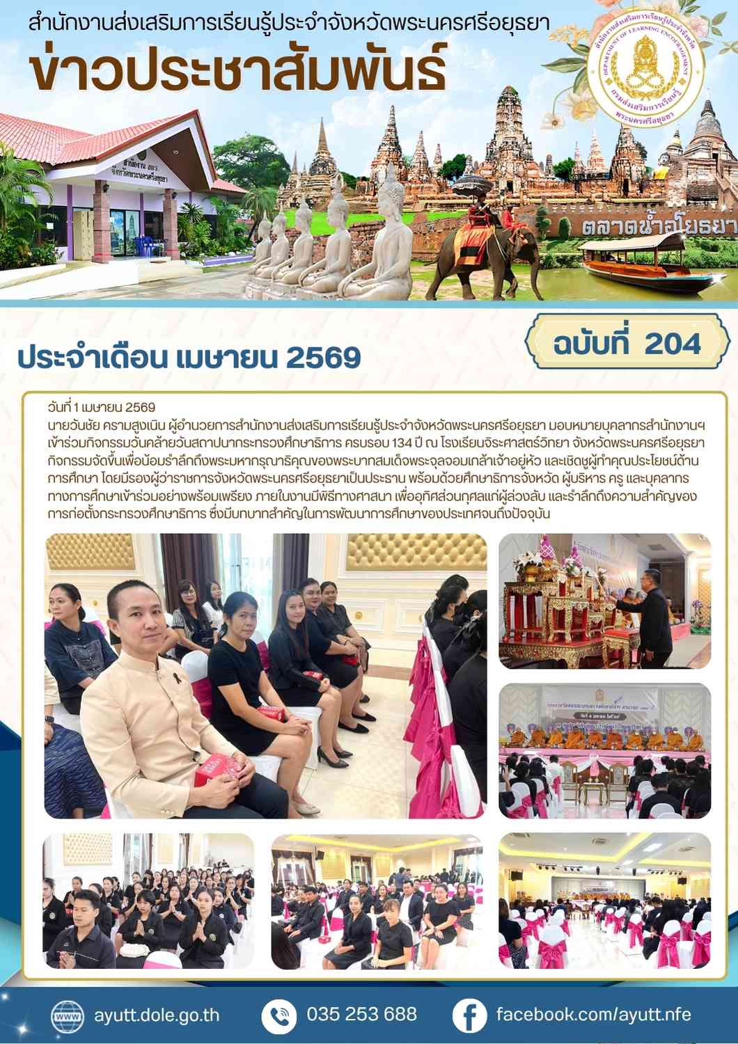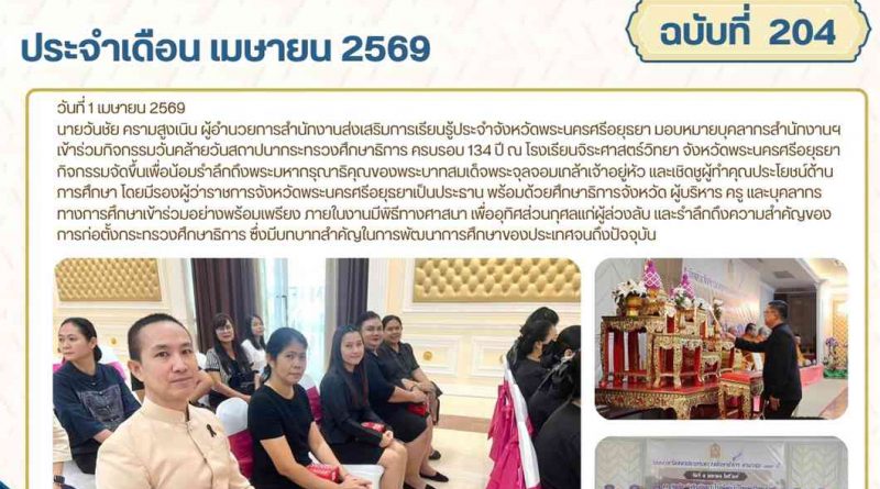 นายวันชัย ครามสูงเนิน ผู้อำนวยการสำนักงานส่งเสริมการเรียนรู้ประจำจังหวัดพระนครศรีอยุธยา มอบหมายบุคลากรสำนักงานฯ เข้าร่วมกิจกรรมวันคล้ายวันสถาปนากระทรวงศึกษาธิการ ครบรอบ 134 ปี ณ โรงเรียนจิระศาสตร์วิทยา จังหวัดพระนครศรีอยุธยา