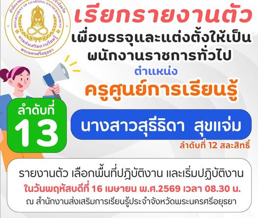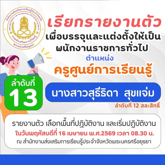 ประกาศ เรียกรายงานตัวเพื่อเข้ารับการบรรจุและแต่งตั้งเป็นพนักงานราชการทั่วไป ตำแหน่ง ครูศูนย์การเรียนรู้ ลำดับที่ 13 admin 8 เมษายน 20268 เมษายน 2026 Post Views: 17