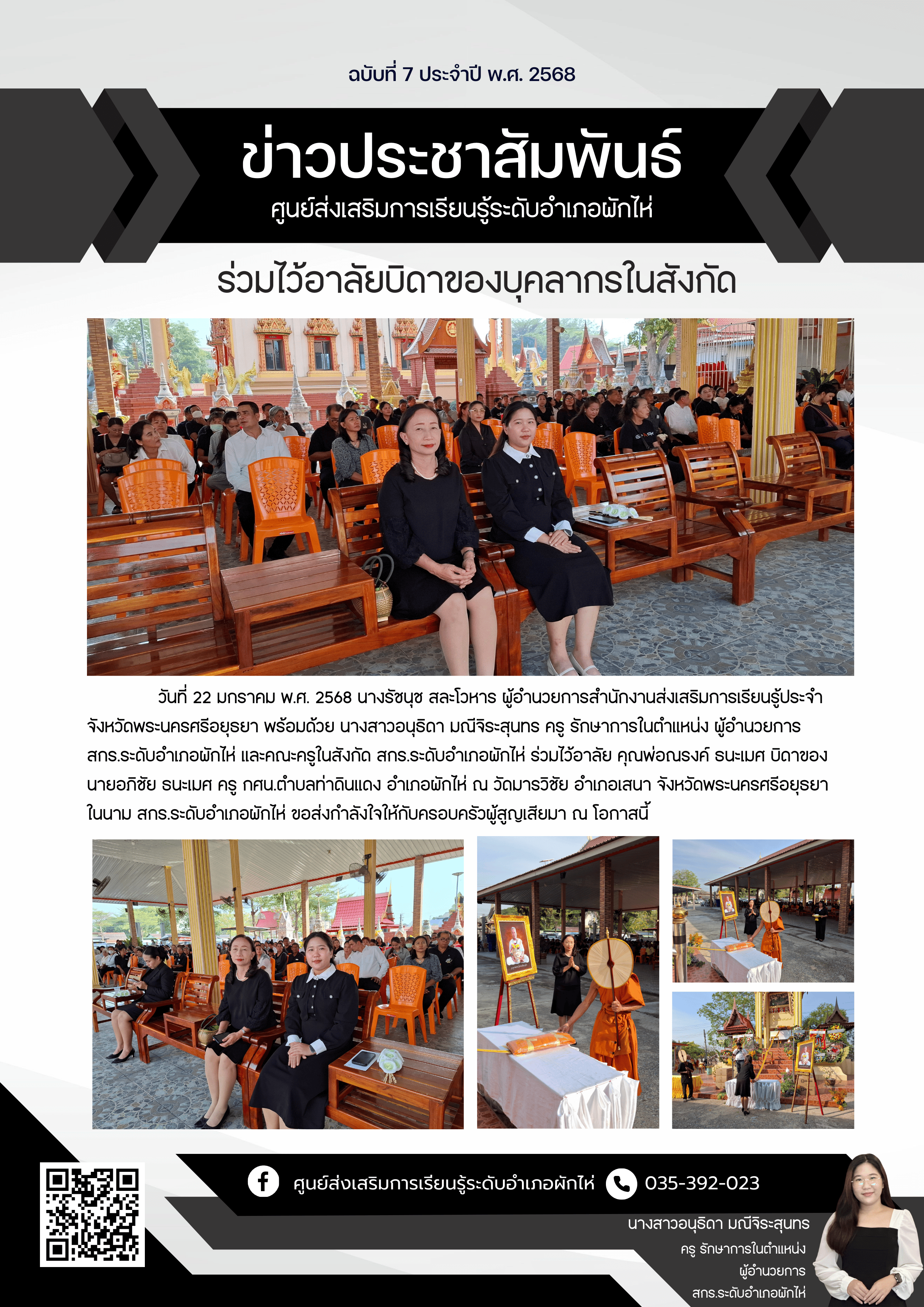ศูนย์การเรียนรู้ระดับตำบลลาดน้ำเค็ม สมัครเรียน ตรวจสอบผลการเรียน กศน.ตำบลลาดน้ำเค็ม อำเภอผักไห่ ข่าวประชาสัมพันธ์ 10 กุมภาพันธ์ 2025 นิเทศ ติดตาม และตรวจเยี่ยมการจัดการเรียนรู้เพื่อการพัฒนาตนเอง 22 กุมภาพันธ์ 2024 ประชาสัมพันธ์รับสมัครนักศึกษา ภาคเรียนที่ 1/2567 22 กุมภาพันธ์ 2024 กิจกรรมการศึกษาเศรษฐกิจพอเพียง ปีงบประมาณ 2567
