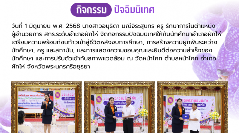 จัดกิจกรรมปัจฉิมนิเทศให้กับนักศึกษาอำเภอผักไห่